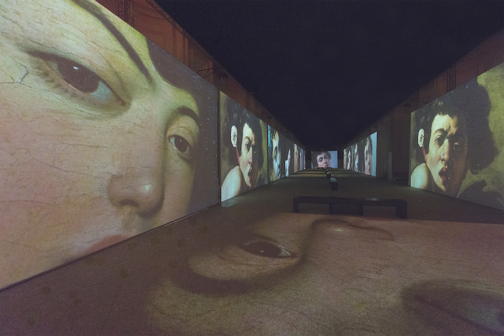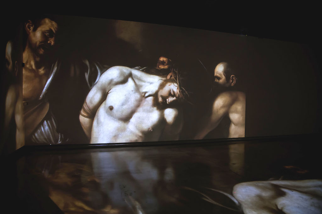 Le grandi video proiezioni ci abbracciano a 360 gradi. E cambiando la prospettiva ci vengono incontro. Si può cogliere così anche il più piccolo particolare delle sue opere. E si entra negli sguardi dei suoi personaggi. Che proprio grazie alla luce escono prepotentemente dall’oscurità. Una luce divina e terrena allo stesso tempo. Quella luce che solo Michelangelo Merisi, tra gli artisti del suo tempo, è riuscito a rendere così reale e intensa. Quella luce, che investe il visitatore rendendolo quasi parte dell’opera dandogli la sensazione di essere “dentro”.