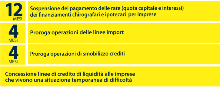 Nell’ambito del pacchetto di misure adottate, al fine di rafforzare ulteriormente il sostegno alle aziende in questo momento di particolare difficoltà, la Banca d Piacenza ha previsto anche il finanziamento chirografario “Finazienda breve termine tasso fisso bullet”, con durata sino a sei mesi al tasso fisso dello 0,90%, ferme restando le altre condizioni.