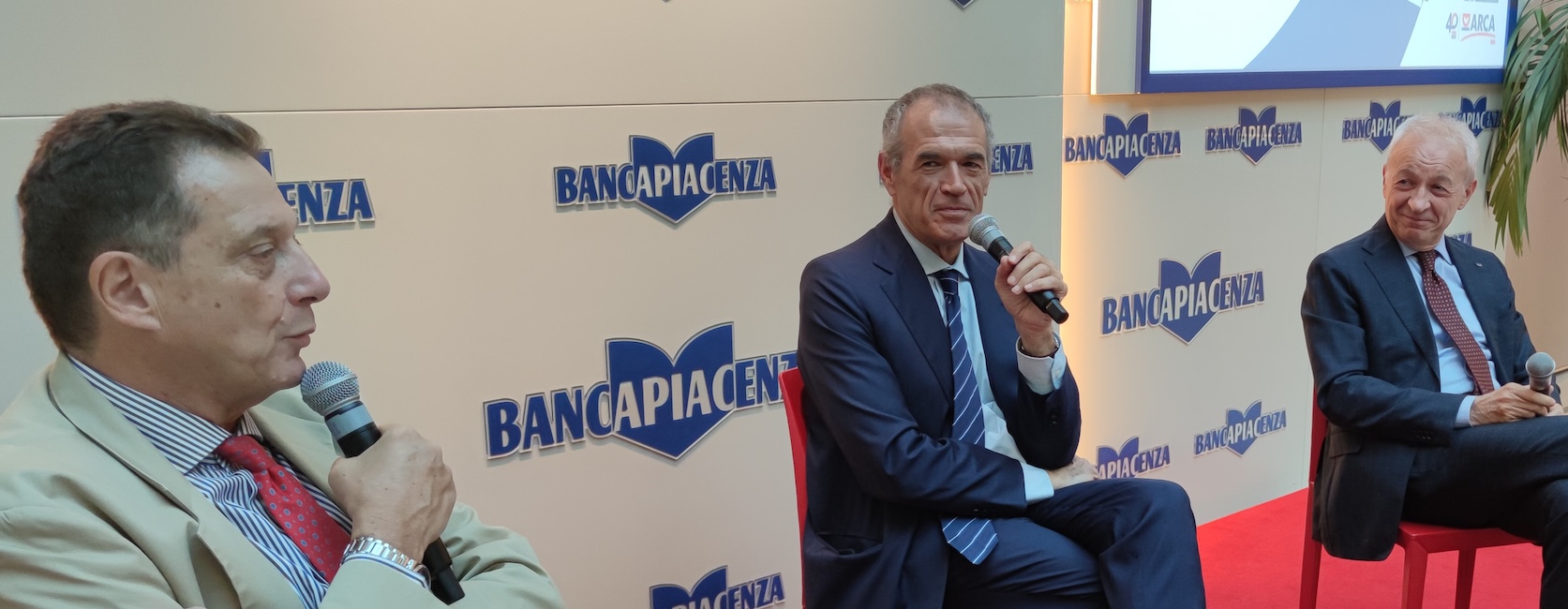 Il volume è stato presentato ieri da Cottarelii per iniziativa di Banca di Piacenza e Arca Fondi SGR in un PalabancaEventi gremito in ogni ordine di posti; tanto che la Sala Corrado Sforza Fogliani non è stata sufficiente ad ospitare gli intervenuti, rendendo necessario anche l’utilizzo di Sala Panini videocollegata.