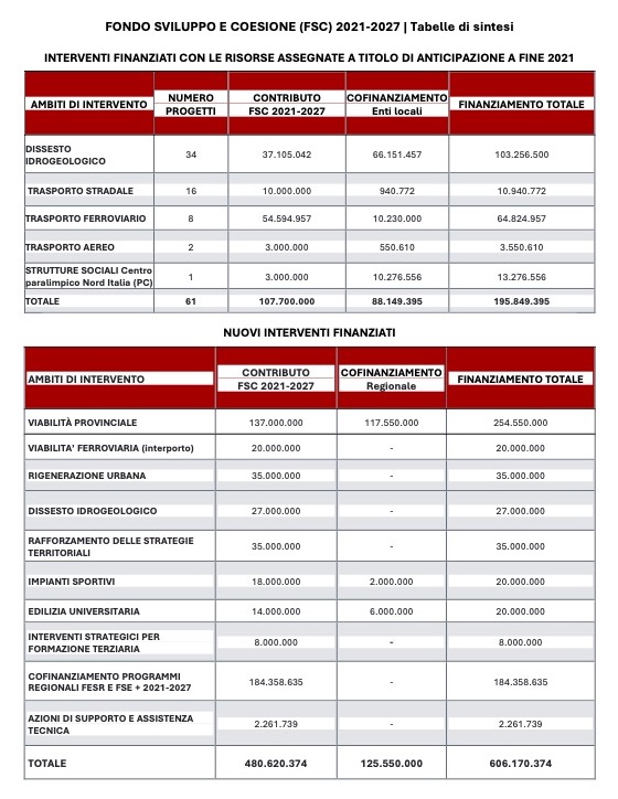 Insieme ai Fondi strutturali europei, il Fondo sviluppo e coesione è lo strumento finanziario principale attraverso cui vengono attuate le politiche per lo sviluppo della coesione economica, sociale e territoriale e la rimozione degli squilibri economici e sociali. Ha carattere pluriennale, in coerenza con l’articolazione temporale della programmazione dei Fondi strutturali dell’Unione europea; in particolare, l’intervento del Fondo è finalizzato al finanziamento di progetti strategici, sia di carattere infrastrutturale sia di carattere immateriale, di rilievo nazionale, interregionale e regionale. La dotazione complessiva del Fsc per il periodo 2021-2027 è pari a 73,5 miliardi; l’ammontare delle risorse destinate a Regioni e Province autonome è di 32,4 miliardi, con l’80% del totale dedicato al Mezzogiorno, conclude la nota della Regione Emilia-Romagna.