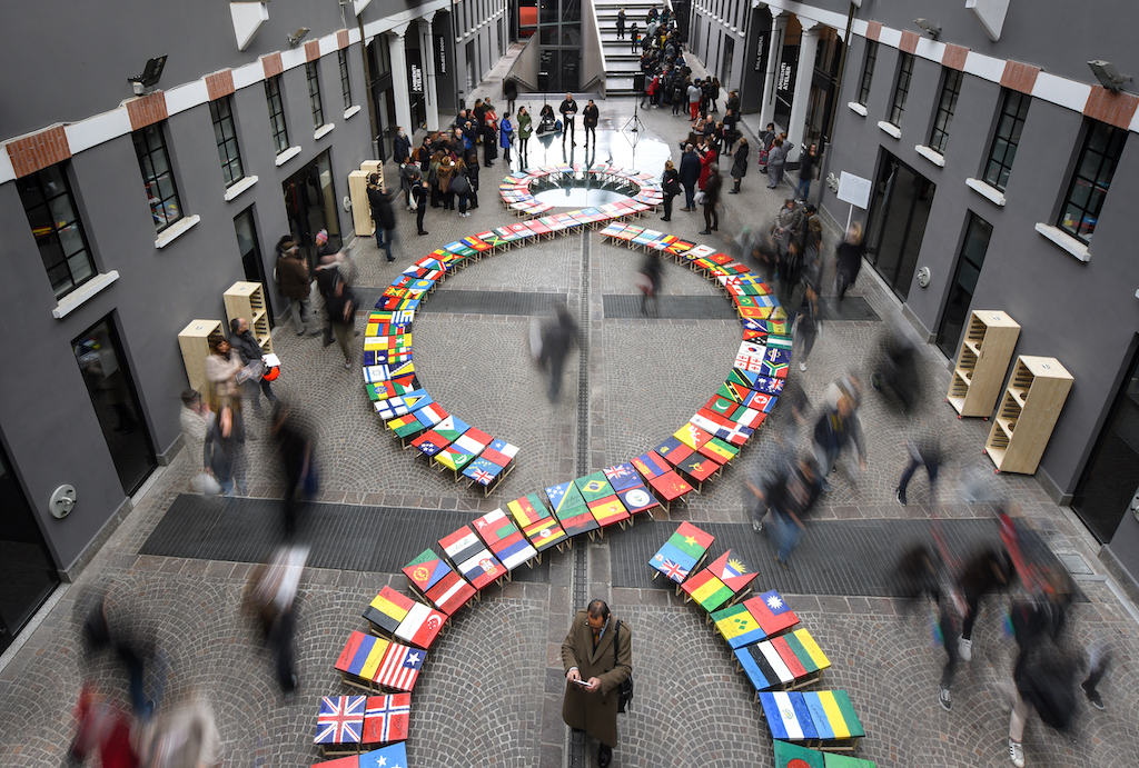 La Bandiera del Mondo 1+1=3 esprime quindi la volontà di entrambi gli artisti di creare un evento compartecipato per dare al pubblico l’opportunità di riconoscere la propria identità nazionale insieme a quella degli altri. Con significati culturali, sociali e simbolici legati all’attuale momento storico e geopolitico, contraddistinto da continui sconfinamenti e da una nuova distribuzione delle presenze etniche nel mondo.