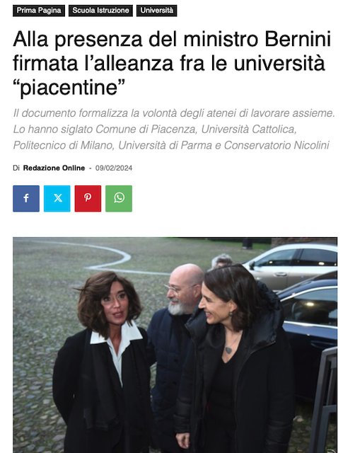 E proprio la prima cittadina di Piacenza durante il suo intervento ha ringraziato l’assessore, rendendogli merito per il grande lavoro fatto in questi mesi. Con il ministro Bernini che a sua volta si è associata pubblicamente nei complimenti a Brianzi per il bel risultato ottenuto a Piacenza.