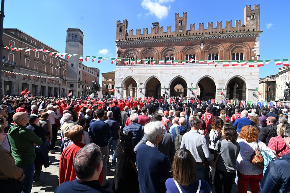 Piacenza e l’80° anniversario del 25 aprile. Una mattinata di celebrazioni della Liberazione iniziata con tre lunghi cortei confluiti in una piazza Cavalli gremita e composta, memore della “sobrietà” richiesta dal lutto nazionale indetto per la scomparsa di Papa Francesco. Una piazza dove si contavano oltre 3mila presenze, ricca di gente comune, di rappresentati di tante associazioni non solo partigiane, di donne e uomini delle istituzioni civili e militari del territorio.