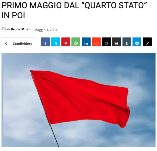 Primo maggio, festa del lavoratori: cosa resta del “quarto stato”? «Il lavoro dovrebbe essere l’espressione di una passione, la realizzazione delle proprie capacità, dovrebbe essere giustamente retribuito, sicuro, non pericoloso né precario, dovrebbe essere un orgoglio e una soddisfazione, la certezza di contribuire al bene comune. Non è così, ma la “festa” è comunque occasione di bilancio, analisi, ripensamento». A scrivere queste parole è Bruna Milani su Piacenza Diario, in un articolo ricco di spunti interessanti, che merita di essere letto tutto d’un fiato.