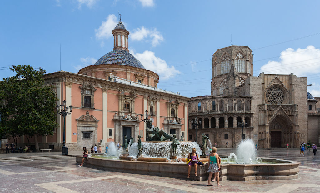 La visita di Valencia prende inizio dalla Cattedrale (sotto, nella foto), ubicata nell’antichissimo Barrio della Vergine. Si tratta della patrona e protettrice della Città. Barocca di impianto, la Cattedrale ha origini gotiche (1262). Imponenti i tre portali ornati di statue; l’interno è un susseguirsi di cappelle dedicate a santi e martiri con una simbologia soteriologica (dottrina della salvezza) di grande valore artistico e spirituale. Spicca tra queste la Cappella del Santo Graal che la leggenda vuole conservi il mitico Calice.