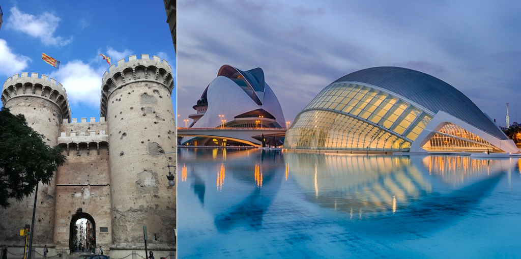 La storia di Valencia incomincia dalle due grandiose porte di accesso (Torre de Serranos e Torre de Quarte) rispettivamente due monumenti massicci che dominano la Città. Dopo le torri, i quartieri popolari del centro meritano una passeggiata notturna.