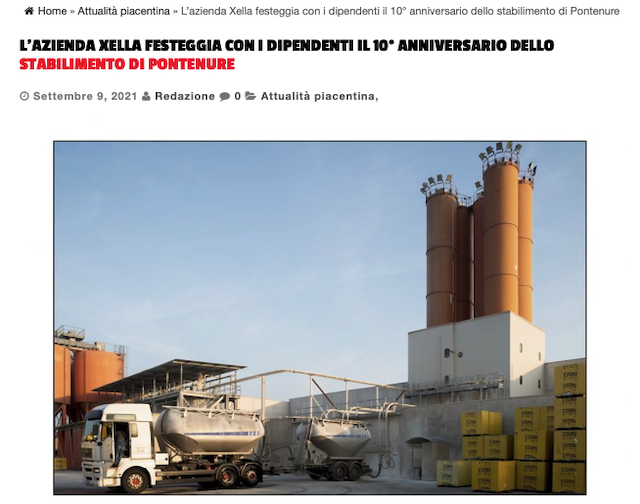 Tutti i particolari sul 10° anniversario dello stabilimento piacentino e sulle attività dell’azienda associata a Confindustria – con le dichiarazioni di Marco Paolini, Chief executive officer di Xella Italia – nell’articolo di Piacenza Diario.